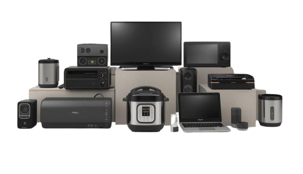 TVs – outdated radios – bulky speaker systems – broken CCTV cameras – printers – fax machines – laptops – desktops – monitors – kitchen electronics – pressure cookers – slow cookers – espresso machines – AND MUCH MORE